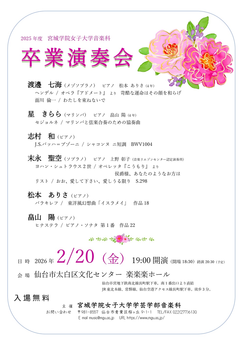2025年度 宮城学院女子大学音楽科卒業演奏会