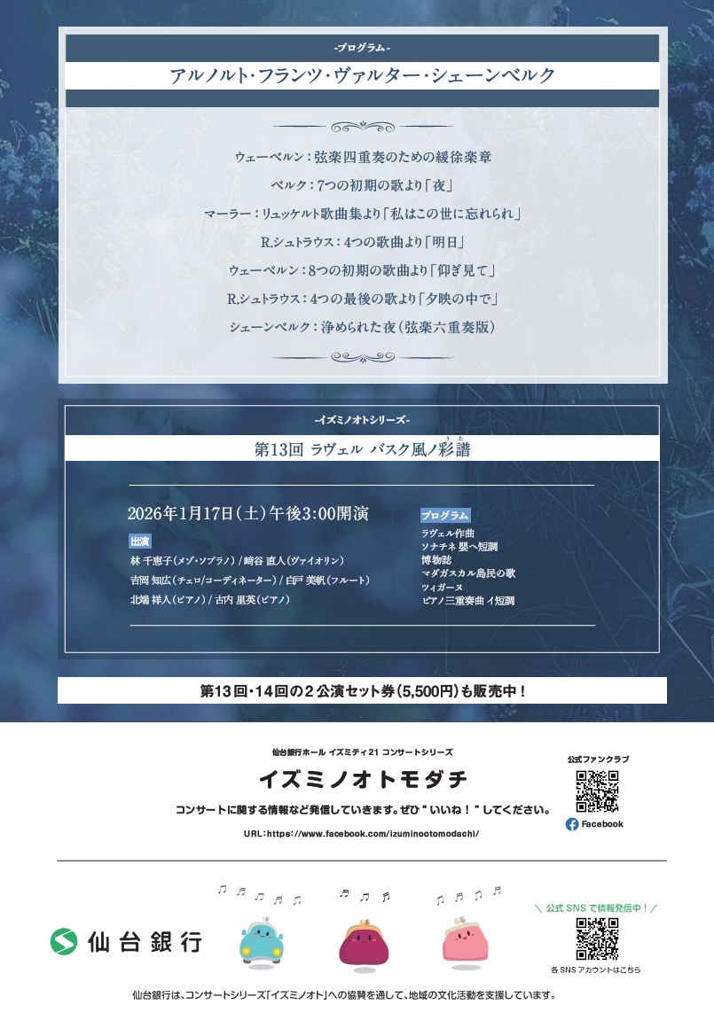 ある作曲家の人生に焦点を当てたプログラムをお届けする、仙台銀行ホール イズミティ21のコンサートシリーズ『イズミノオト』。