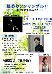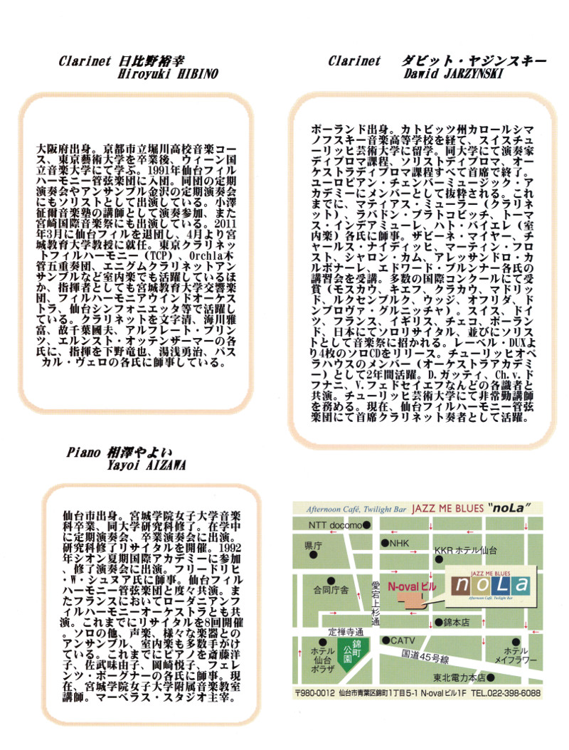 TOP > 仙台・コンサート情報掲示板 > 魅惑のアンサンブル1st 2本のクラリネットとピアノ
