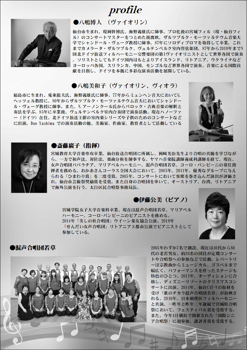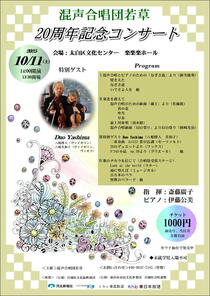 今年創設20周年を迎える混声合唱団若草は仙台市を中心に活動を続けています。コロナ禍を経て6年ぶりの単独コンサートを開催できることになりました。現在40代から80代の団員31名が在籍しています。