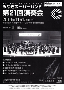 TOP > 仙台・コンサート情報掲示板 > みやぎスーパーバンド第21回演奏会