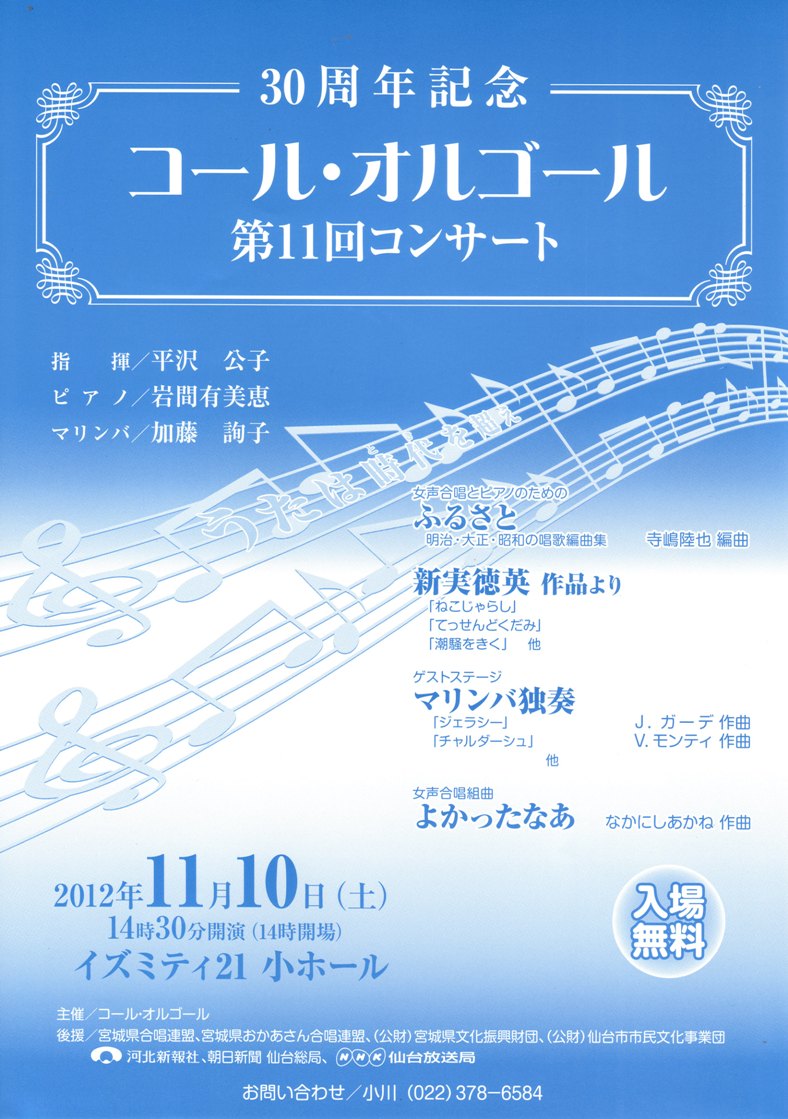 TOP > 仙台・コンサート情報掲示板 > 30周年記念コール・オルゴール第11回コンサート