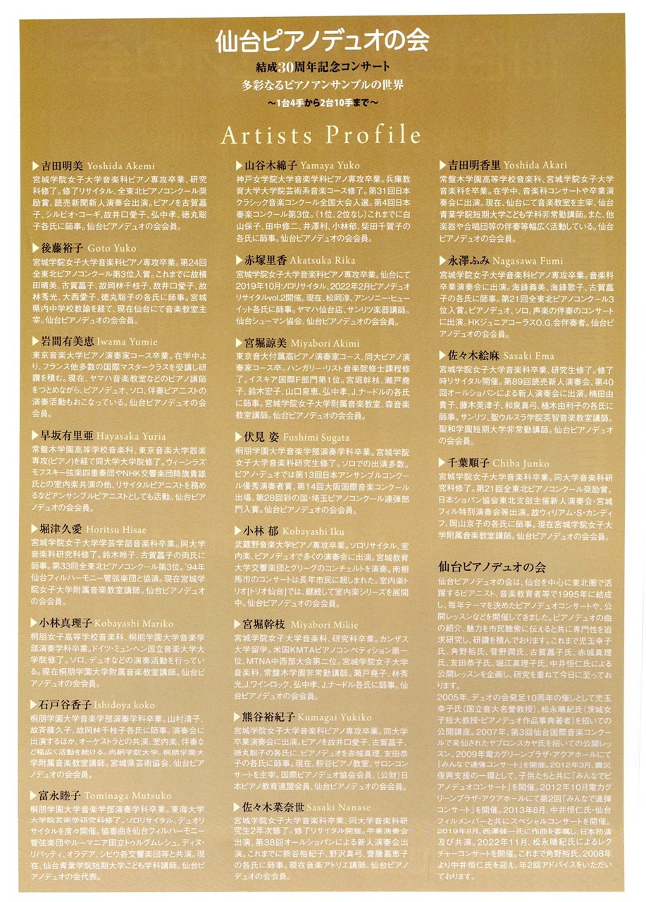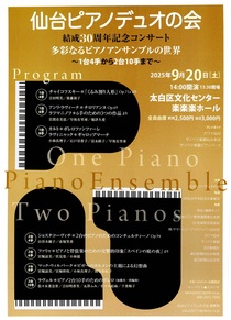TOP > 仙台・コンサート情報掲示板 > 仙台ピアノデュオの会 結成30周年記念コンサート