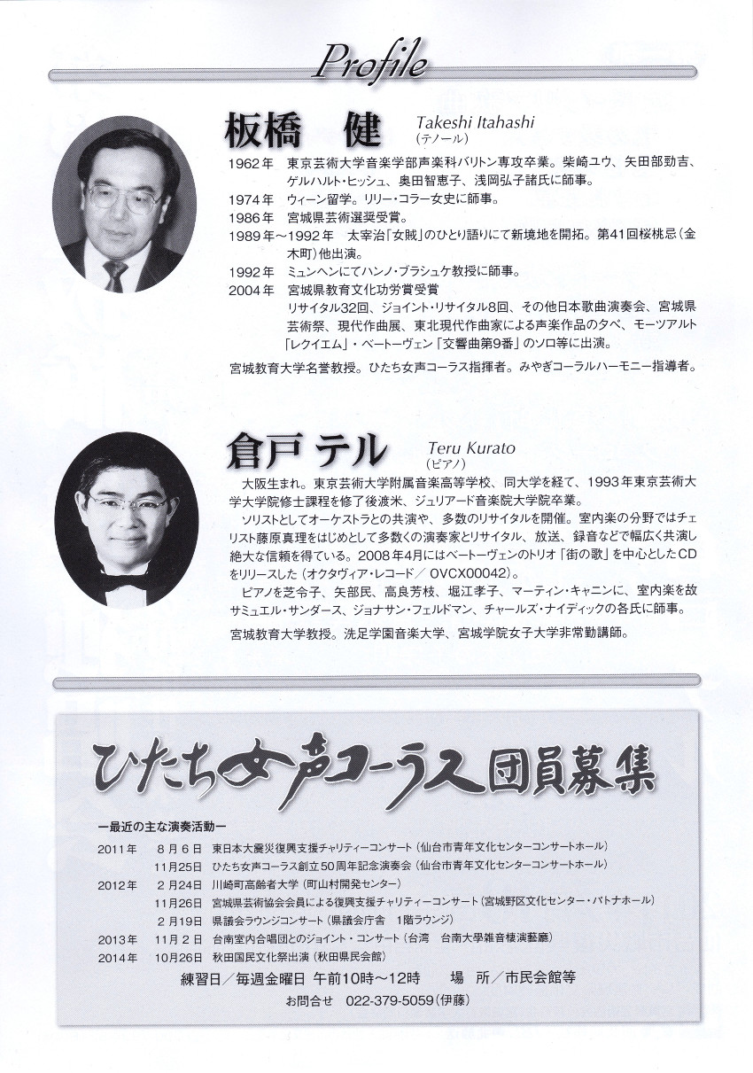 TOP > 仙台・コンサート情報掲示板 > 第33回 板橋 健 独唱会