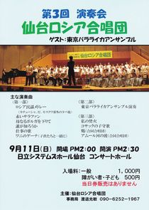 TOP > 仙台・コンサート情報掲示板 > 仙台ロシア合唱団 第3回演奏会