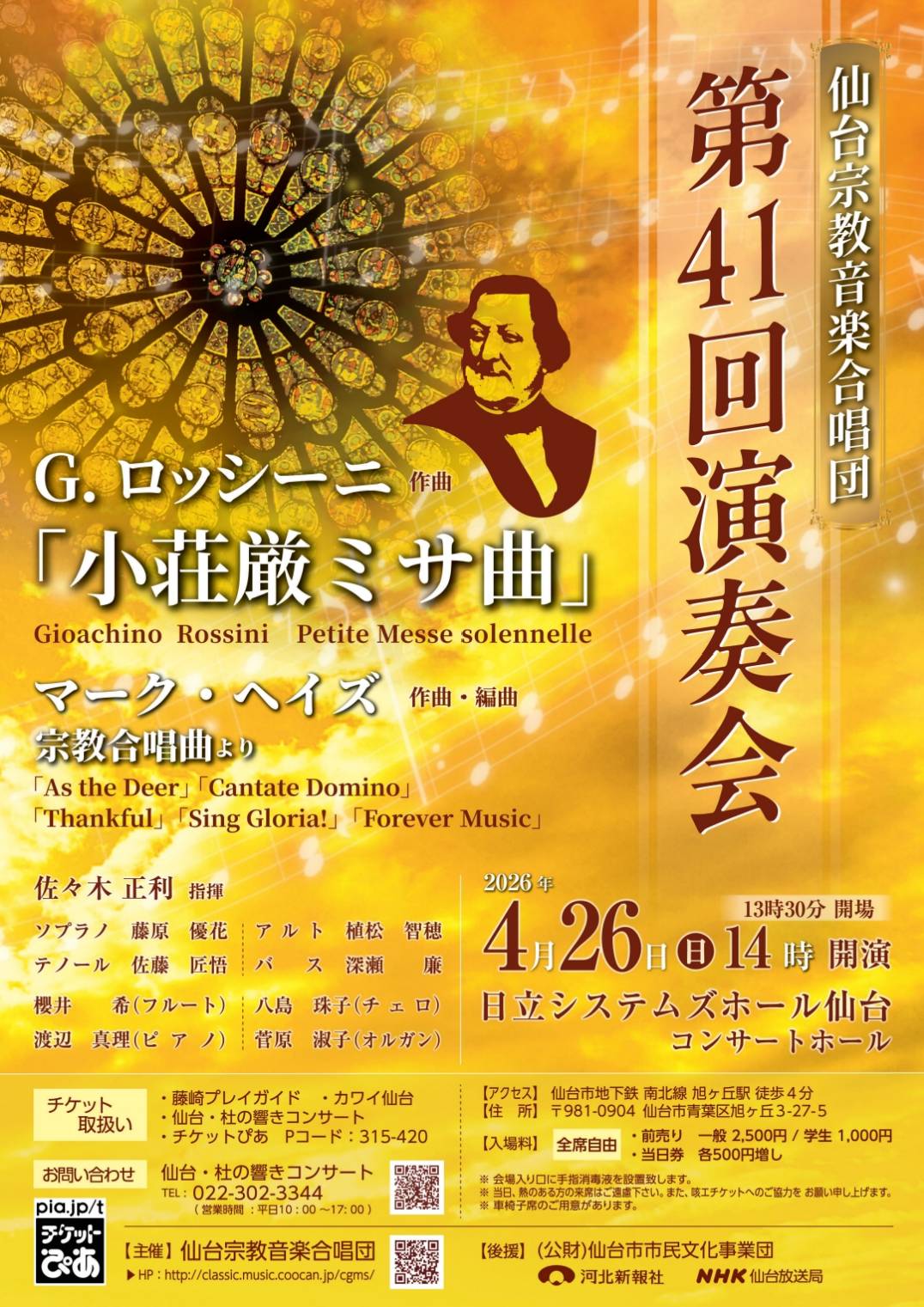 TOP > 仙台・コンサート情報掲示板 > ♪仙台宗教音楽合唱団第41回演奏会