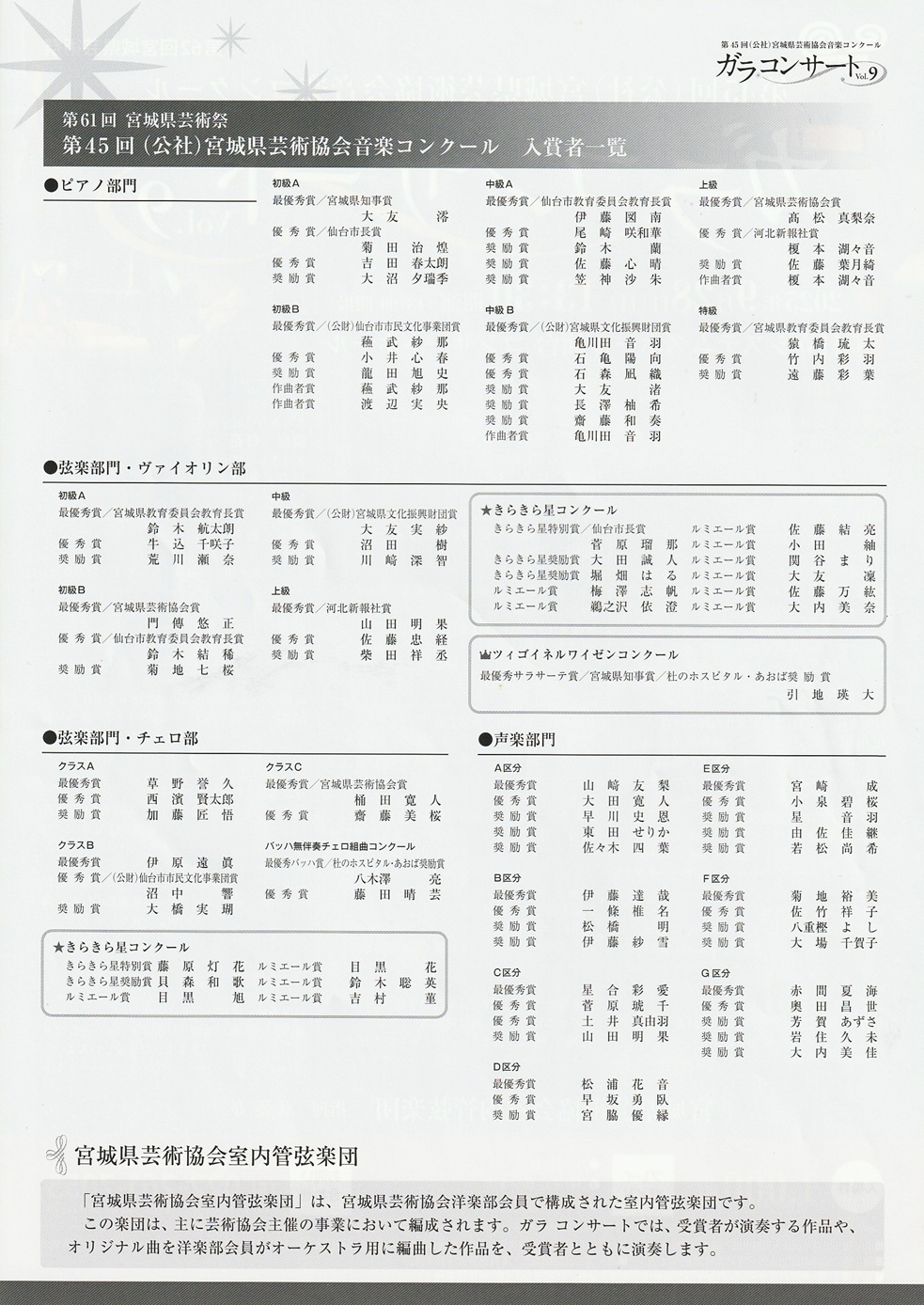TOP > 仙台・コンサート情報掲示板 > 第45回宮城県芸術協会音楽コンクール ガラコンサートVol.9