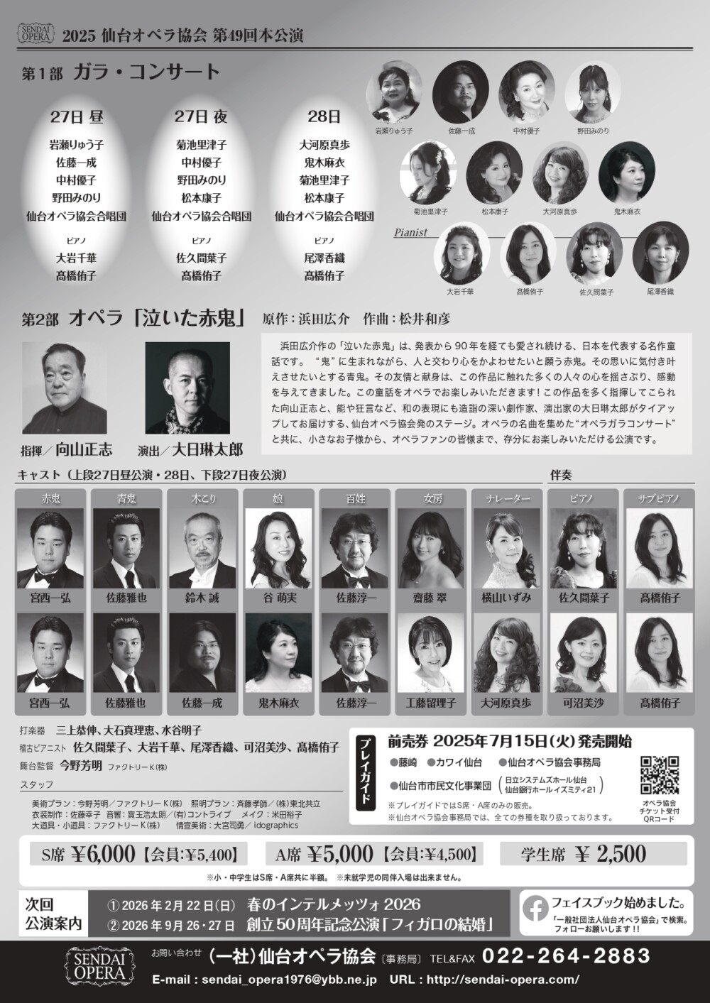 料 金:全席指定 S席6,000円 A席5,000円 学生席2,500円