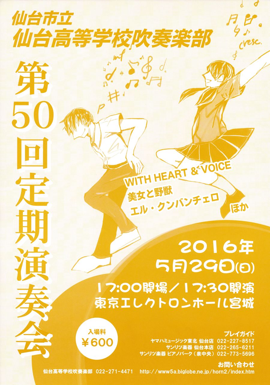 TOP > 仙台・コンサート情報掲示板 > 仙台高校吹奏楽部第50回定期演奏会