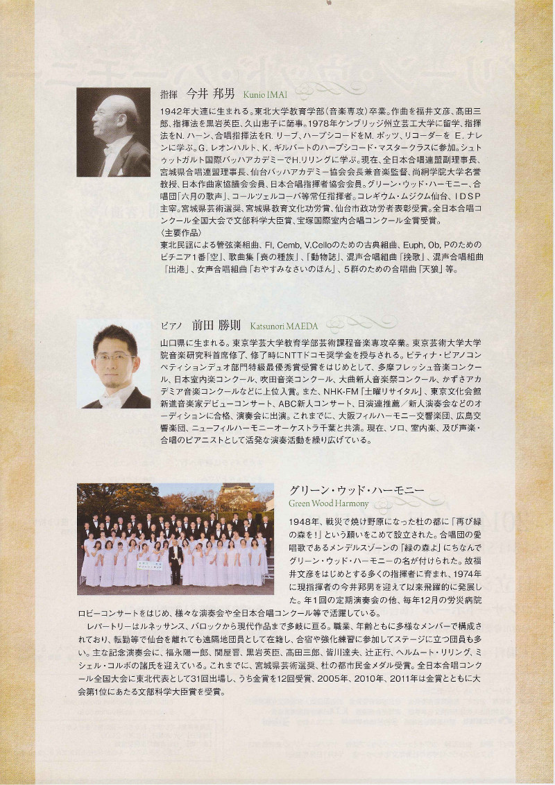 天満敦子、佐野成宏、村治佳織や小山実稚恵といった一流の音楽家を仙台に招きコンサートを主催する他、仙台で開催されるコンサート情報や音楽家のご紹介を始めとして仙台のクラシック音楽ファンを広くサポートして参ります。
