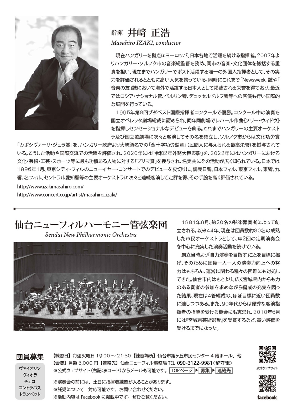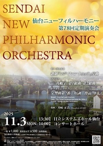 1981年に創立された「仙台ニューフィルハーモニー」78回目の定期演奏会。指揮は井﨑正浩氏です。