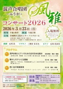 TOP > 仙台・コンサート情報掲示板 > 混声合唱団 風雅コンサート2026