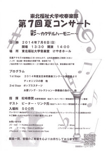 TOP > 仙台・コンサート情報掲示板 > 東北福祉大学吹奏楽部 第7回夏コンサート