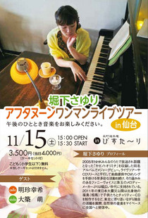 TOP > 仙台・コンサート情報掲示板 > 堀下さゆり アフタヌーンワンマンライブツアー in 仙台