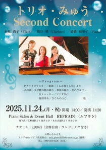 TOP > 仙台・コンサート情報掲示板 > トリオ・みゅう Second Concert