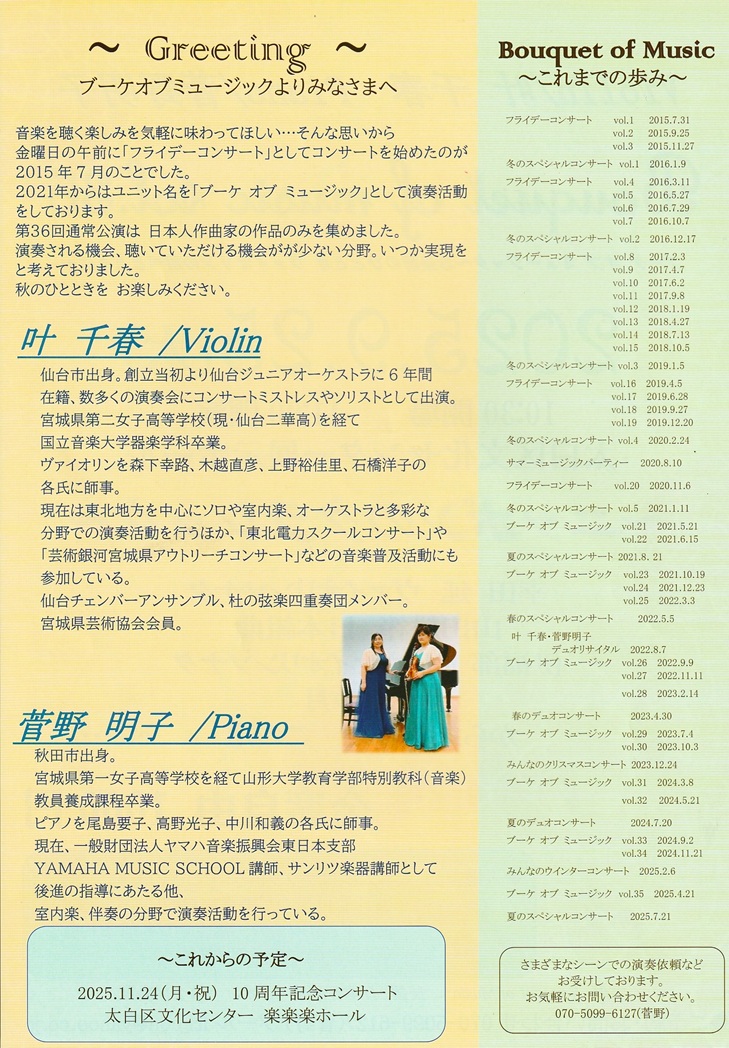 TOP > 仙台・コンサート情報掲示板 > ブーケ オブ ミュージック vol.36 ニッポンのクラシック