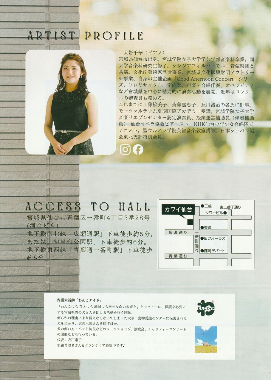 会 場:カワイ仙台4F コンサートサロン「ヴェルデ」