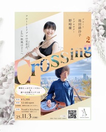 フルートとドブロギターの異色デュオ。横に寝かせて演奏するドブロギター。お互い交わらないはずの楽器たちが交差する瞬間。というニュアンスで「Crossing」と題して、一緒にライブをやってから早2年。今回は「秋風はどこへ」とサブタイトルをつけて、風にまつわる曲たちを用意しています。野菜たっぷりキーマカレー&選べる甘酒ランチつきの、とてもアットホームなコンサートです。