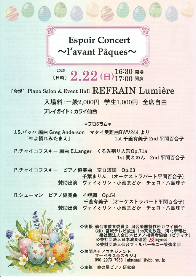 TOP > 仙台・コンサート情報掲示板 > Espoir Concert ~l'avant Paques~