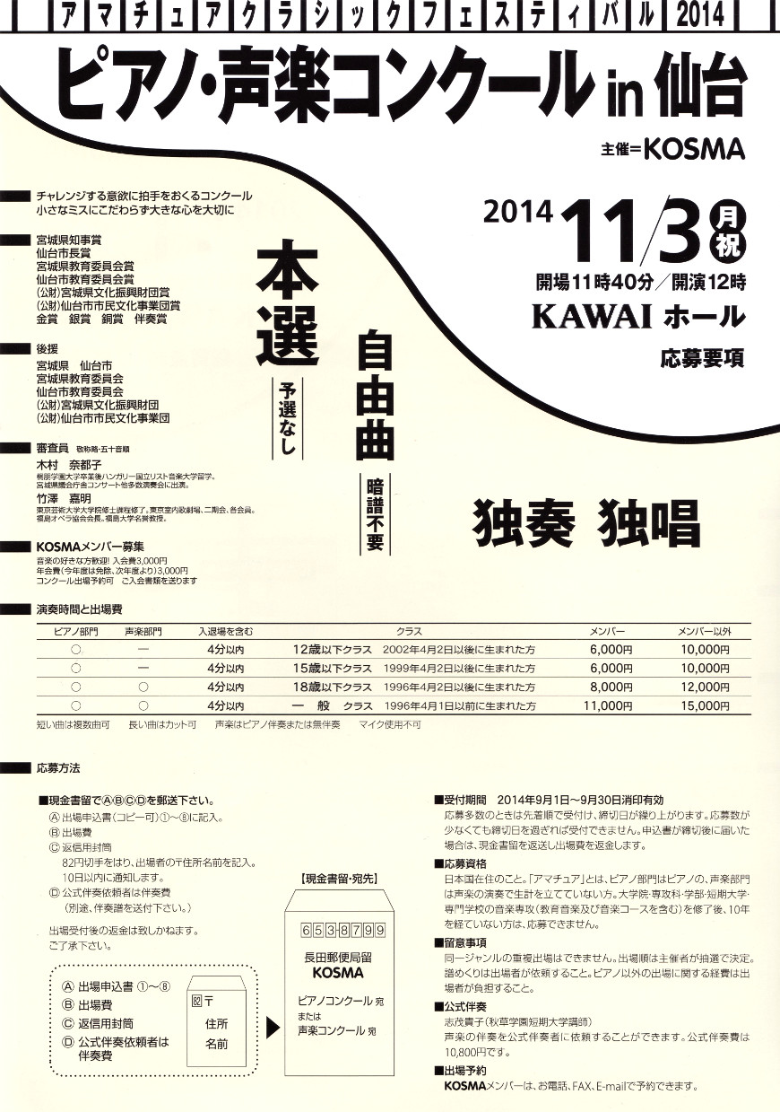 ピアノ・声楽コンクールin仙台