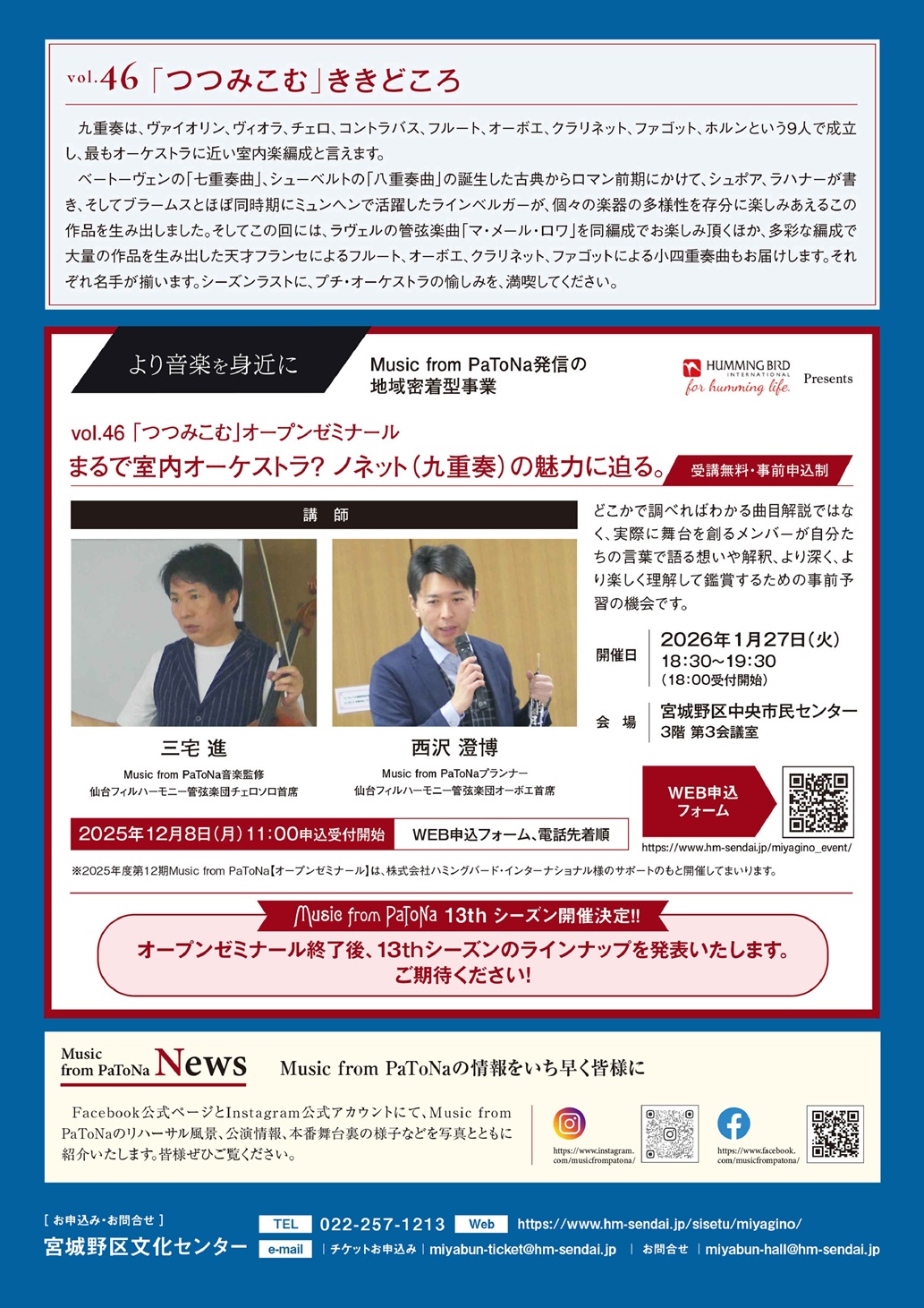 TOP > 仙台・コンサート情報掲示板 > Music from PaToNa vol.46「つつみこむ」