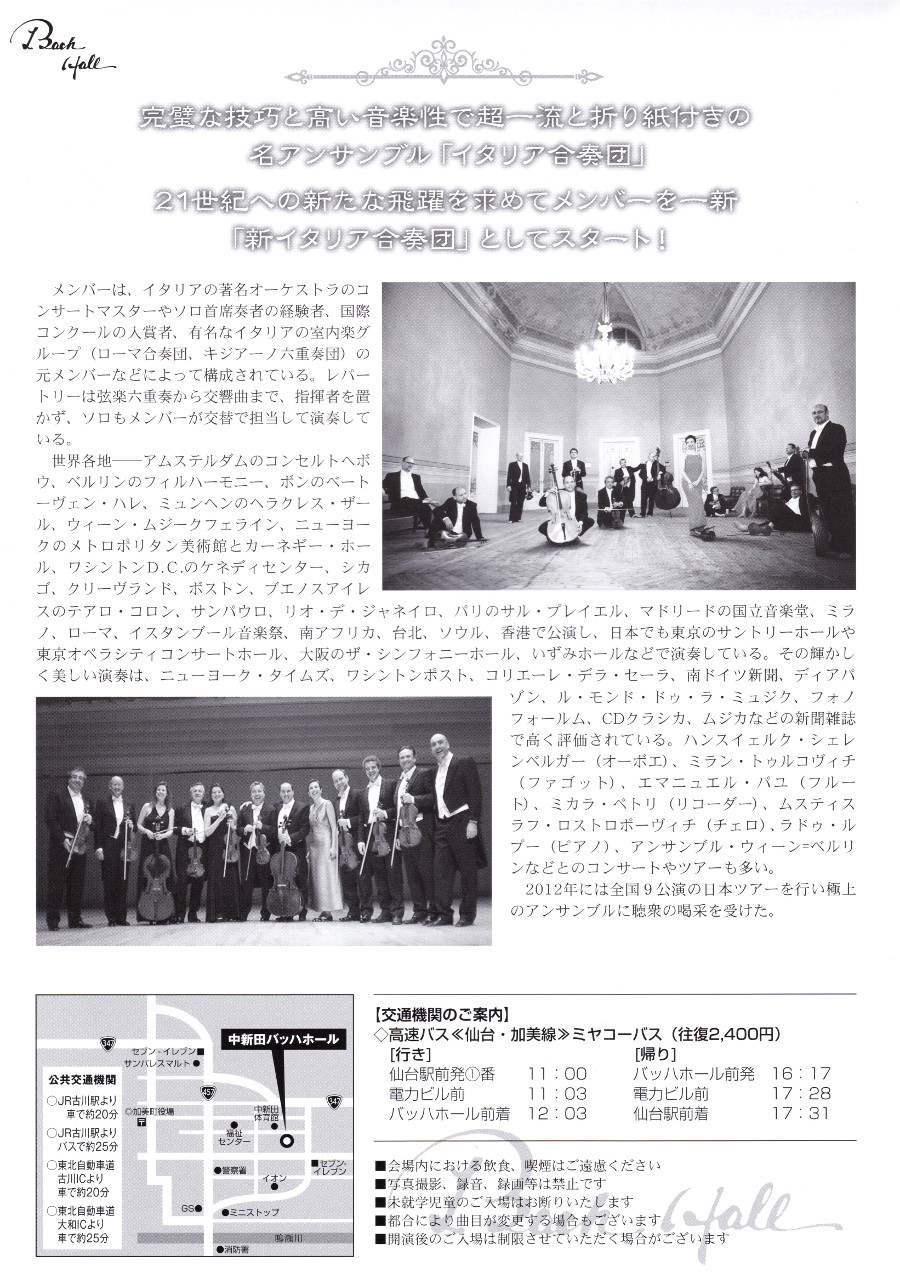 TOP > 仙台・コンサート情報掲示板 > 新イタリア合奏団 黄金のバロック音楽