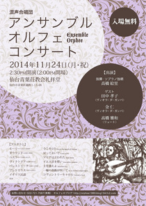 アンサンブル・オルフェは、ルネサンス期ヨーロッパの音楽をレパートリーとする混声合唱団です。