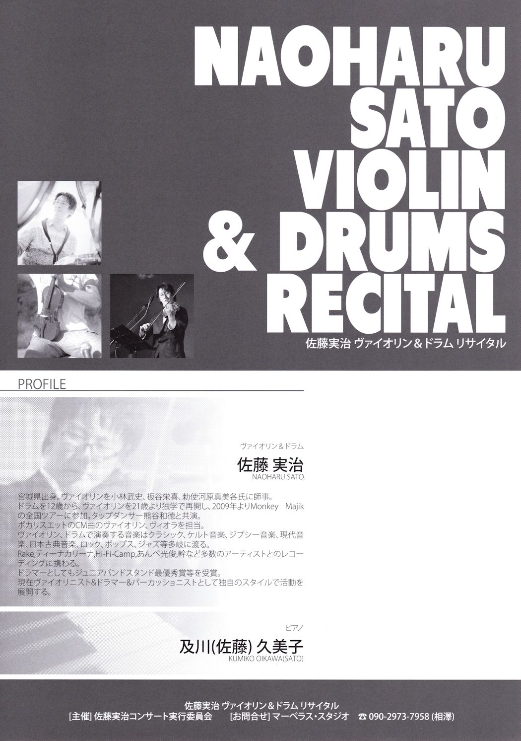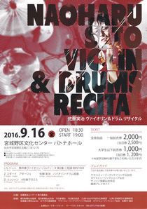 TOP > 仙台・コンサート情報掲示板 > 佐藤実治ヴァイオリン&ドラム リサイタル
