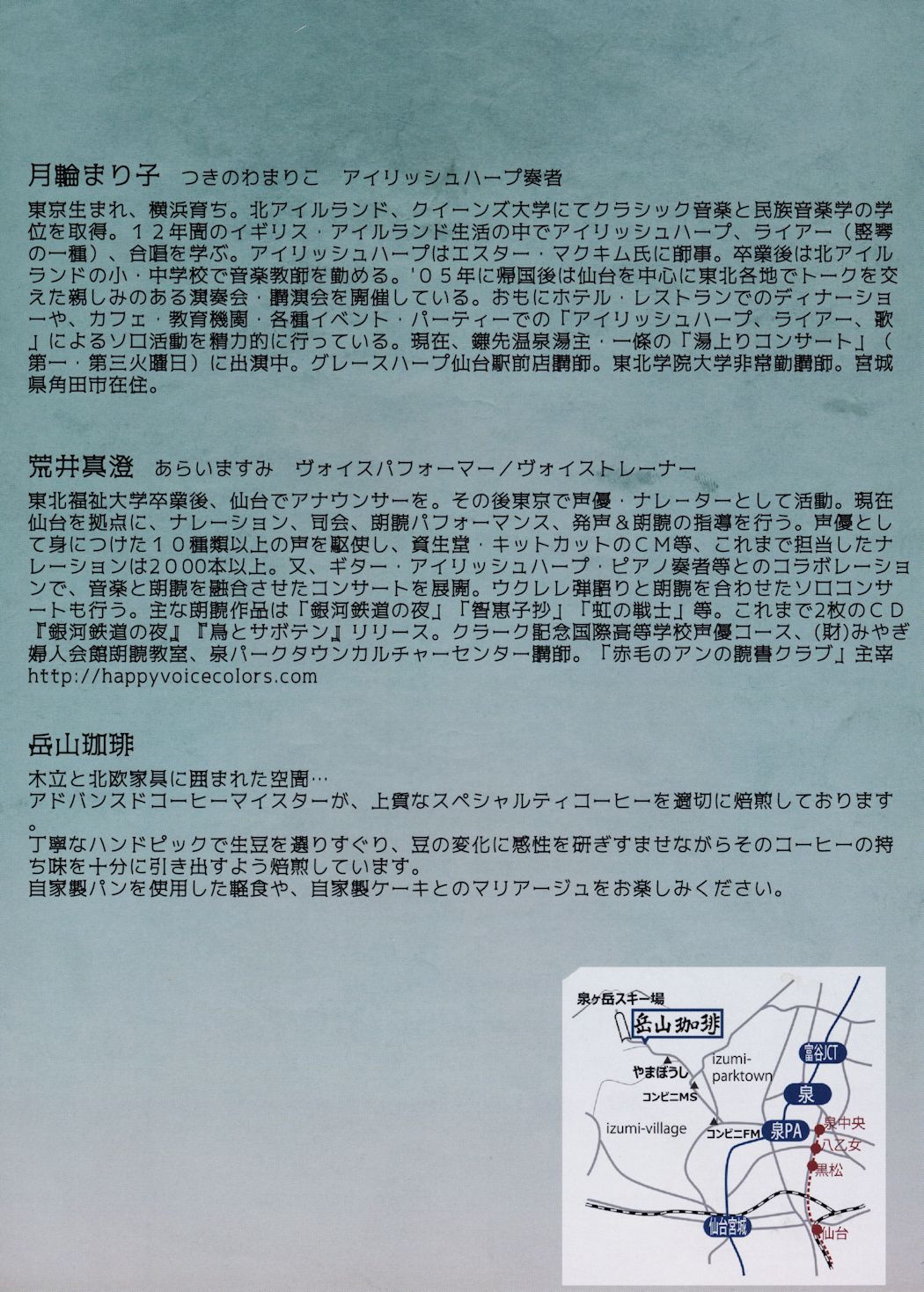 会 場:岳山珈琲(仙台市泉区福岡字岳山)