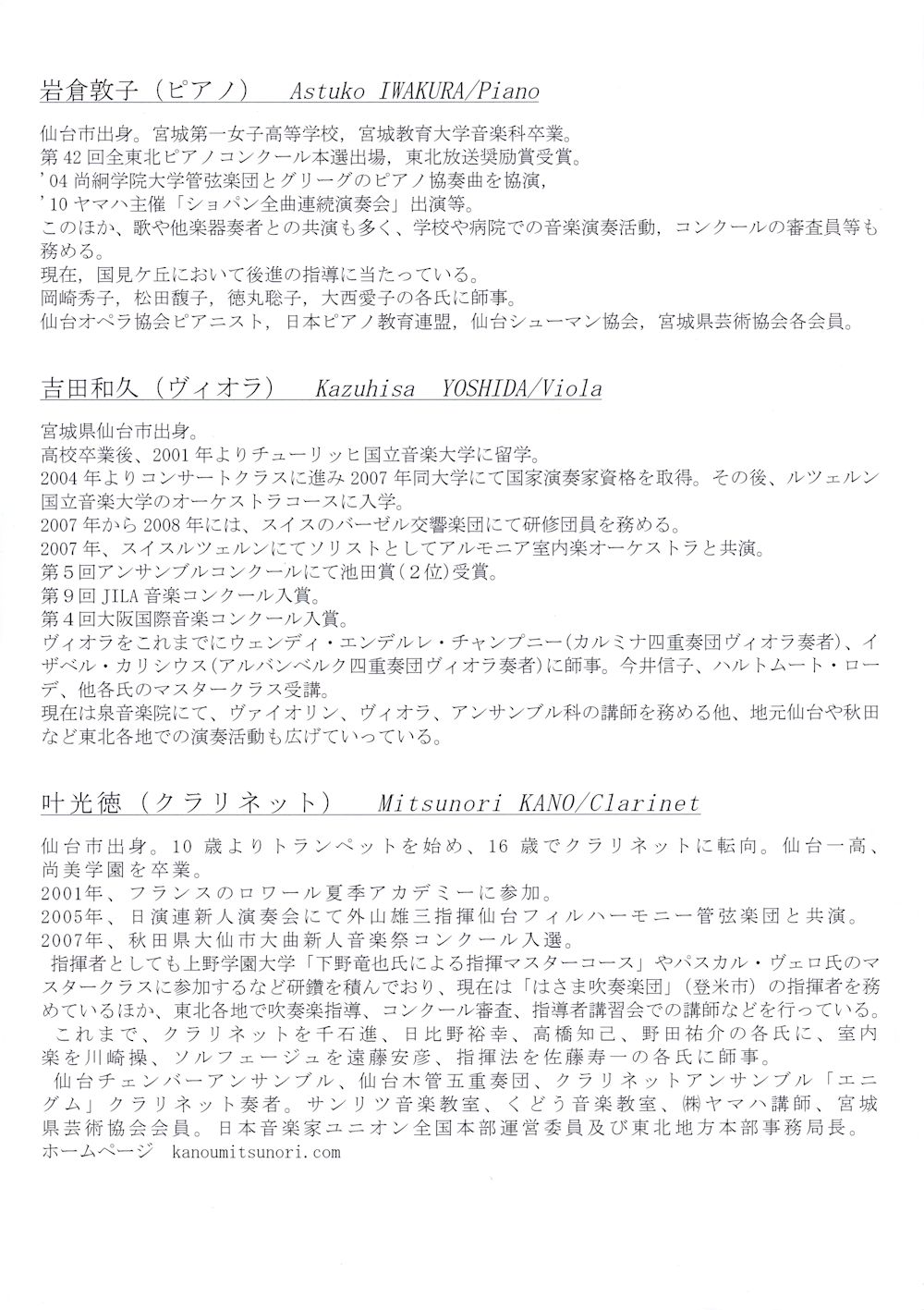 TOP > 仙台・コンサート情報掲示板 > トリオコンサート
