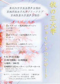 TOP > 仙台・コンサート情報掲示板 > 秋の三大学ジョイントコンサート