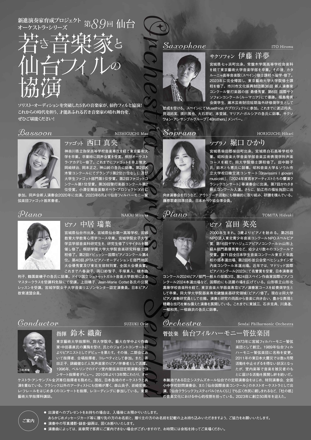 仙台フィル 新進演奏家育成プロジェクト オーケストラ・シリーズ 第89回 仙台