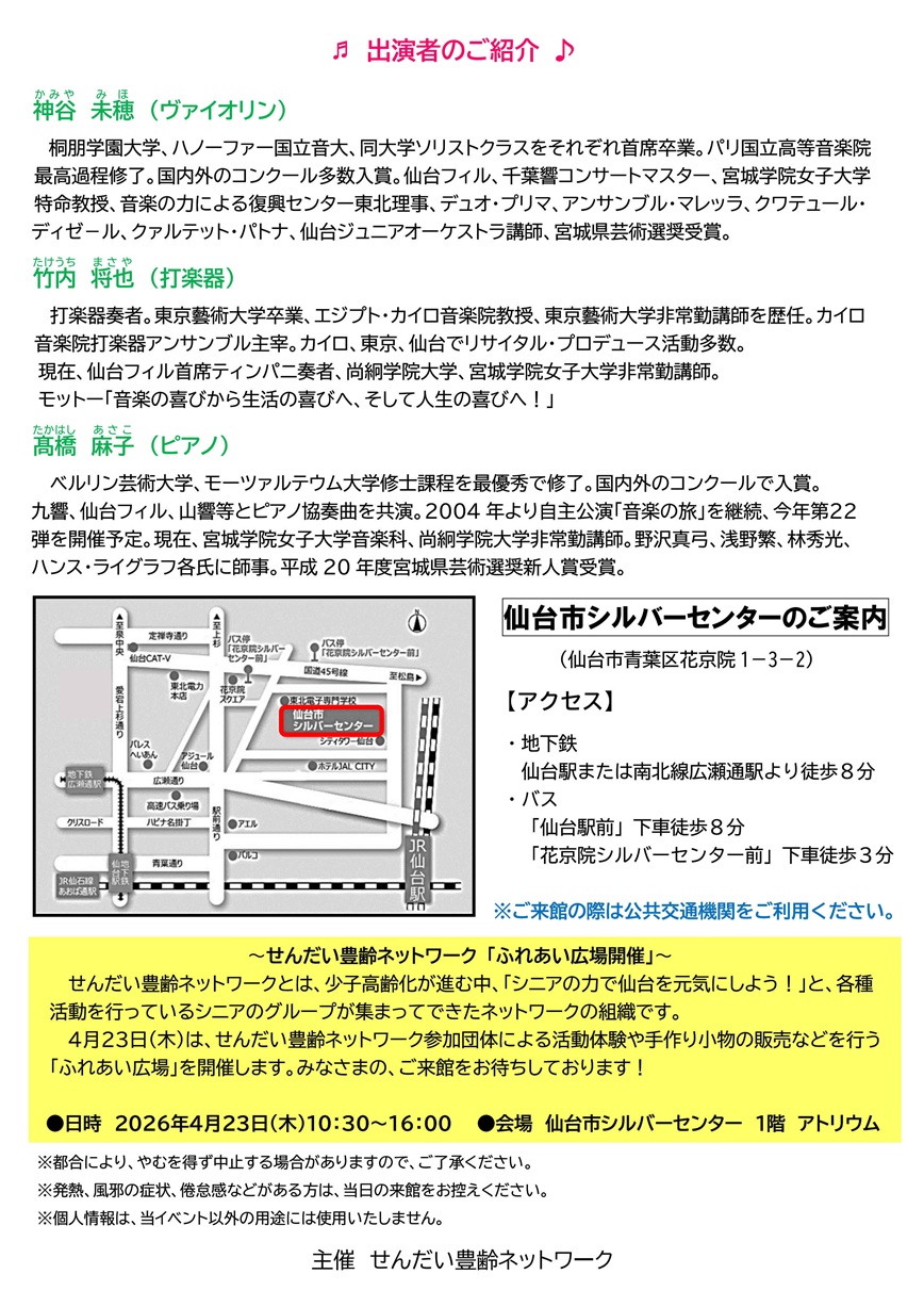 会 場:仙台市シルバーセンター 1階 交流ホール