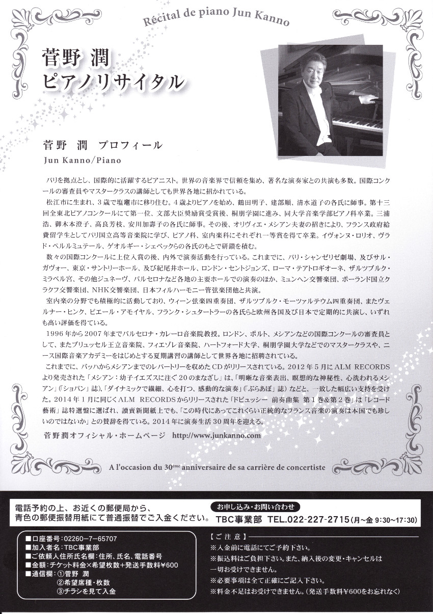 TOP > 仙台・コンサート情報掲示板 > 菅野潤ピアノリサイタル