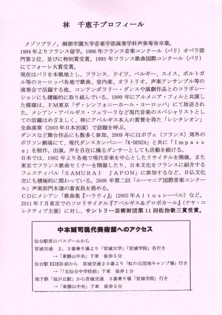 TOP > 仙台・コンサート情報掲示板 > 現代音楽の夕べ メゾソプラノ 林千恵子