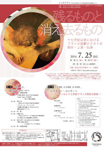 東北大学大学院文学研究科フランス語学フランス文学研究室主催のシンポジウム「残るものと消え去るもの 17世紀以前におけるフランス語劇テクストの制作・上演・伝承」の第2部。