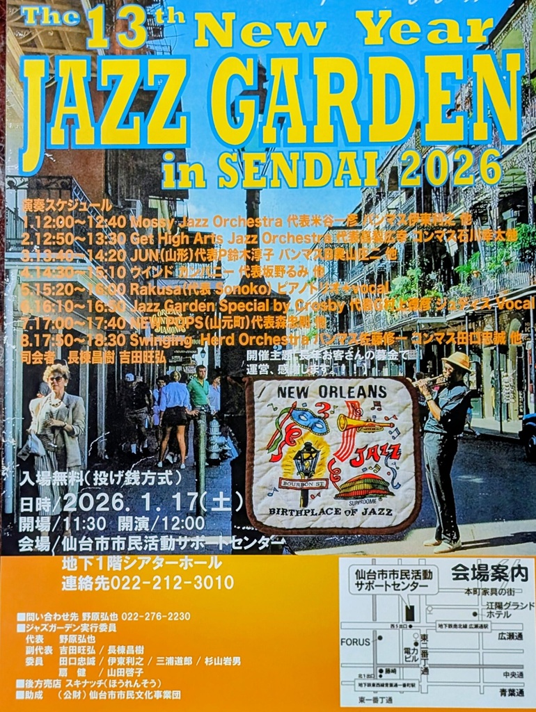 TOP > 仙台・コンサート情報掲示板 > The 13th New Year JAZZ GARDEN in SENDAI 2026